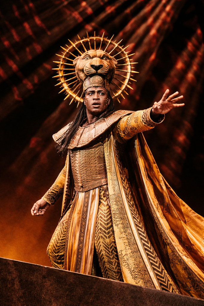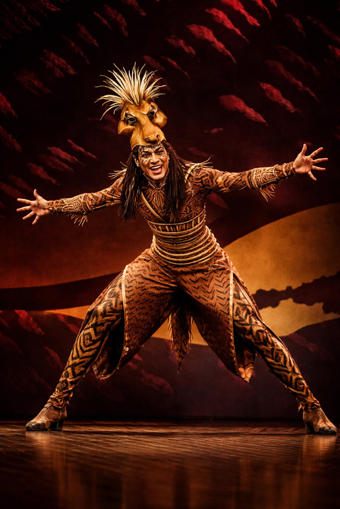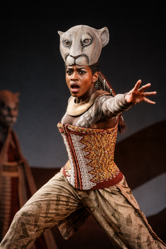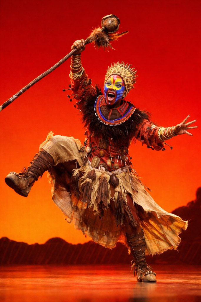 Simba is the main character in the play, and when introduced, he is portrayed as a young and curious lion with ambitions of becoming king one day. Under the guidance of his father, Mufasa, Simba learns valuable lessons about being a king and having courage. After the death of his father, Simba faces a series of challenges as he tries to come to terms with his guilt and disconnection from his homeland. During Lion King West End shows, Simba reflects on his life in the song “Endless Night” before finding the courage to go back and restore balance to the Pride Lands.